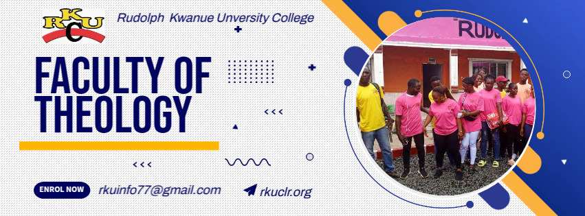 The Faculty of Theology at Rudolph Kwanue University College (RKUC) exists to train and equip men and women with sound biblical knowledge, spiritual maturity, and ministerial skills to serve the Church, society, and humanity at large. It blends theological education, research, and practical ministry to prepare students for leadership in churches, Christian organizations, and community transformation.